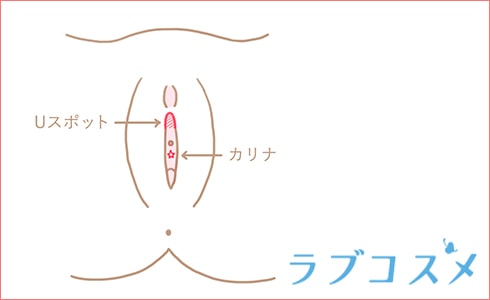 尿道から膣の間のこと。中でイキづらい女性はUスポットやカリナを刺激することでイクことも多いです。クリトリス以上に感じる場合もあります。