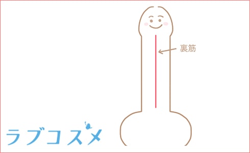 亀頭の裏側部分。亀頭と竿を繋ぐ筋も男性の気持ちいい性感帯です。フェラのときに舐めて気持ちよくさせて。