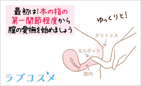 処女であれば、自分の指も入れたことが無い可能性もあります。最初はゆっくりと1本の指の第一関節程度から、膣の愛撫を始めましょう。