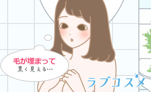 埋没毛とは、毛根から伸びてきた毛が、まっすぐ生えずに、肌の中に埋まって生えてしまう現象です。主に、カミソリではなく、ムダ毛処理を抜いて行うと起こりやすく、場合によっては、炎症などにも繋がると言われています。