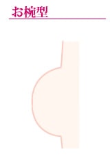 女性の目標の形とされるおわん型バストは、おわんを伏せたような丸く半円に近い形のバスト。乳房の底辺と高さがほぼ同じ大きさで高さはさほどなく、ふっくらと丸みがある形が特徴的ですが、鎖骨と左右の乳房の3点の距離が少し離れ気味で三角形です。女性が連想する綺麗な形のバストとして人気があります。