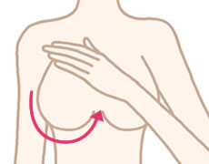 まず手のひらを反対側の胸の上から中を通り下から脇に向かって円を描くように、胸の周りを優しくさすりながら約30秒ほどマッサージします。