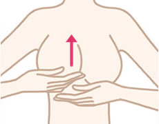 手のひらで反対のバスト全体を下から支え、下から上にさするようにマッサージ。反対側も同様に約30秒程度行いましょう。