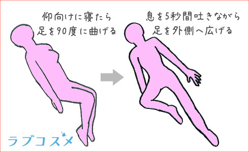 次は、横向きになって足を開く骨盤底筋トレーニングです。