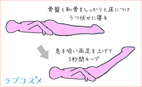 最後は、うつ伏せになって両足を上げる骨盤底筋トレーニングです。