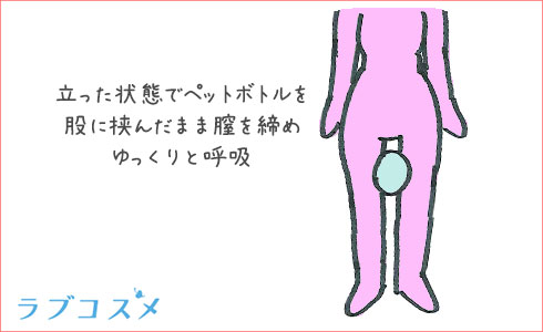 2つ目は、立った状態で「ペットボトル」を股に挟む骨盤底筋ダイエットです。