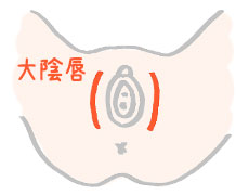 性器の一番外側にある、腟のまわりを取り巻く左右対称の厚い皮膚のひだであり、左右に分かれた部分です。クリトリスや肛門を守るため、皮下脂肪が厚くたっぷりとついています。男性の陰嚢(いんのう)に相当するものです。