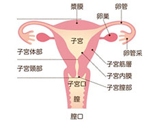子宮は着床後に赤ちゃんが育つ場所です。子宮は膣の上部のつながっている「子宮頸部」と、受精卵が生まれる卵管につながっている「子宮体部」の2つの構造からなっています。