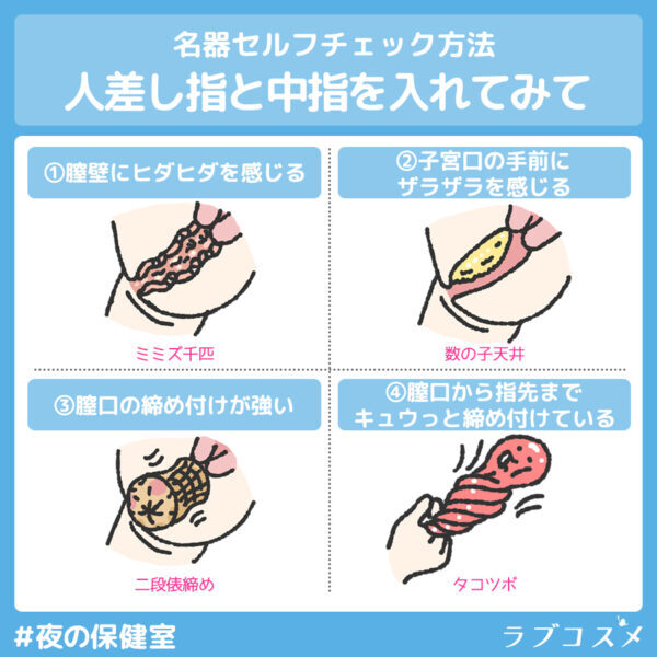 正しく名器かどうかを判断するには、やはり女性が自分の膣内を直接触って確かめるという方法が確実です。