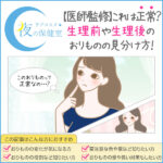 そもそもおりものの量は生理周期などによっても変化するので、偶然生理周期的に増えるタイミングとセックスが重なったということもあります。生理中のおりものの変化やおりものが気になる時のケア方法については、下記記事も参考にしてみてください。