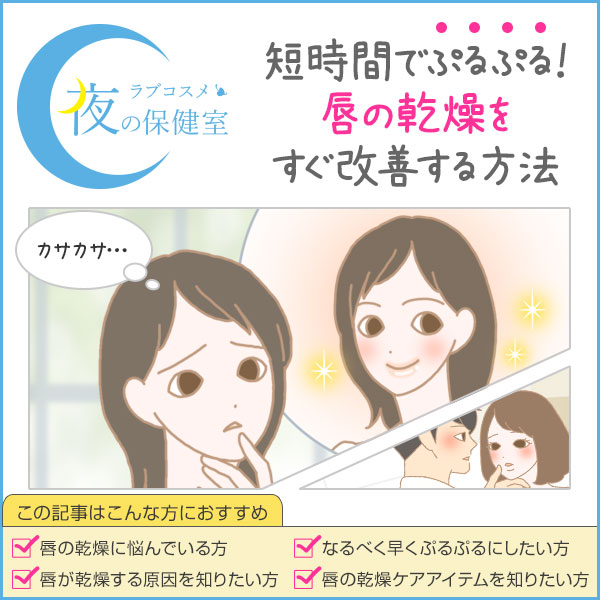 逆にいえば、乾燥したガサガサ唇は、男性がキスしたくない唇なのです!ですが、冬には乾燥によるカサツキ、夏には日焼けによるカサツキ…と、唇は一年中、乾燥の危機にさらされていますキスしたくなるプルプルな唇をゲットするためには、乾燥を防いだり、乾燥によるカサツキを防ぐケアが必要です。