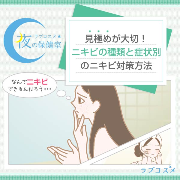 でも、ニキビができたからといって、急に大量のクスリを塗ったり、無理な洗顔を繰り返したりするのは危険です。余計に悪化させたり、新たな大人ニキビを招いたりするかもしれないからです。まずは、自分のニキビの種類を知って、正しくケアする必要があるのです。