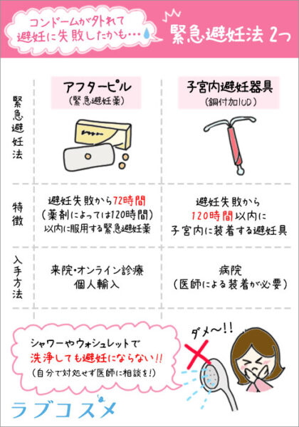 ゴムが中で外れてしまった時、女性はとても不安になります。もしも、コンドームが中で外れてしまっても慌てず焦らず対処しましょう。コンドームが中で抜けた、外れた時の対処法は2つあります。