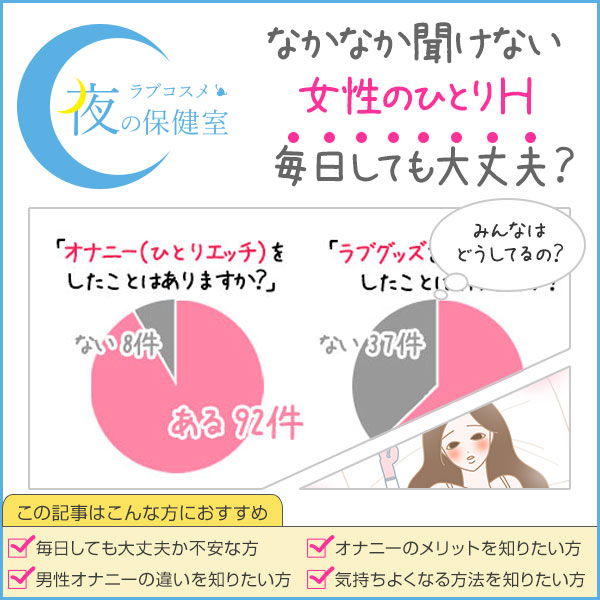 あなたは「オナニー」をしていますか?人肌恋しい1人の夜、ちょっとエッチな気分の夜…という時に、オナニーをした経験のある女性は少なくありません。同時に女性は、「オナニー」に少し後ろめたい気持ちを持っていることも少なくないのではないでしょうか?毎日のようにひとりエッチをしていると、健康などへの影響がないかと不安になることもあるでしょう。