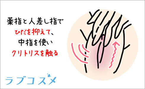指を濡らしたら、利き手の中指の腹で優しくクリトリスに触ります。このときクリトリス周辺のひだが邪魔な場合は、薬指と人差し指でひだを抑えることで、中指を使いクリトリスを触ることができます。
