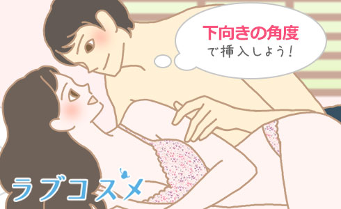 挿入するときは、30~45度程度下向きの角度で挿入することが基本。上から男性器が降ってくるような感覚を味わえることが敷き小股の特徴です。いきなり奥まで挿入すると女性が痛みを感じやすいので、ゆっくり慎重に挿入していきます。