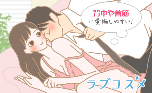 最も愛撫しやすいのは、背中や首筋です。この2つのポイントは、正常位や騎乗位で女性が攻められることが少ない場所。普通のバックで愛撫されることも少ない場所なので、普段とは違う攻められ方に女性は興奮しやすくなります。