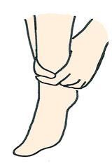 足首は、両手の親指と人差し指で輪をつくって足首を掴み、左右交互にゆっくりねじるように揉んでいきます。