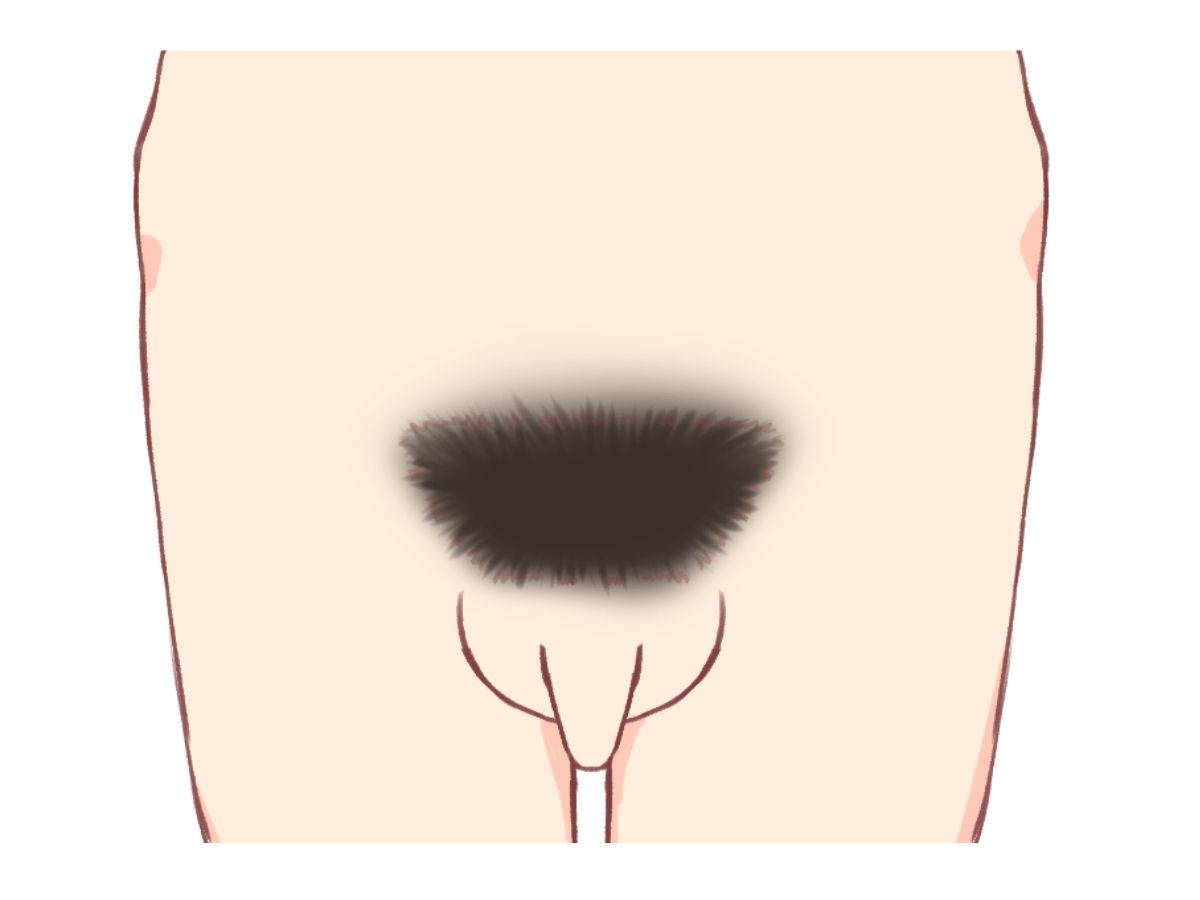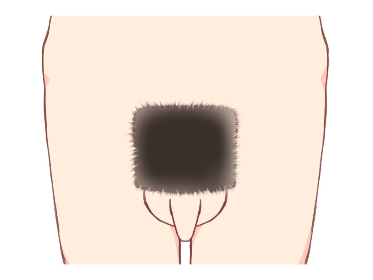 陰茎の手前までの部分に四角く毛を残したデザインです。陰毛の横幅が減り、すっきりして見えるとともに足長効果も期待できます。