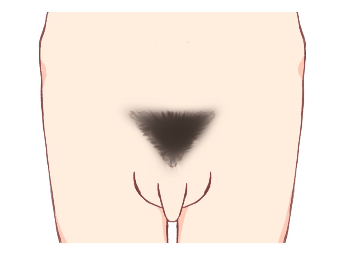 整えつつもナチュラルに見える形です。竿毛と玉毛をすっきりさせるため衛生面も安心と言えます。