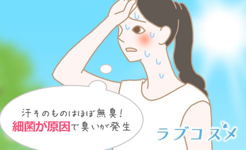 汗は臭うものというイメージがあるかもしれませんが、実際には汗そのものはほぼ無臭です。全身に分布している汗を出す「エクリン腺」には、臭いの原因となる物質はほとんどなく、99%は水分です。でも、残り1%の汗の成分や皮膚の汚れをエサに発生している細菌が原因で臭いを発生させてしまうこともあります。