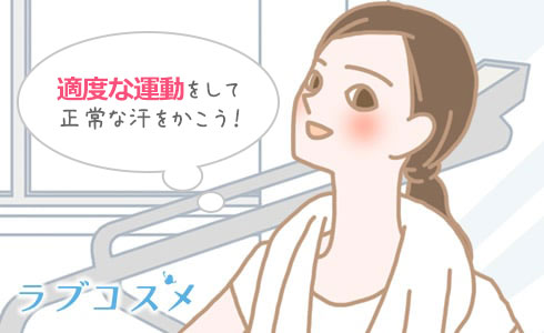 運動不足の生活が続くと、正常な汗をかく機会が少なくなるので汗を出す機能が衰えてしまいます。正常な汗というのは、小粒でサラサラしていて蒸発しやすい汗のことです。反対に、正常ではない汗は、大粒でベタベタしていて蒸発しにくい汗のことです。