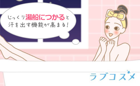 汗を出す機能を高めるトレーニングとして、じっくり湯舟につかる方法があります。基本シャワーだけの生活をしていると、古い角質や皮脂などが取れにくく、アポクリン腺の中の汚れや垢が排出されません。