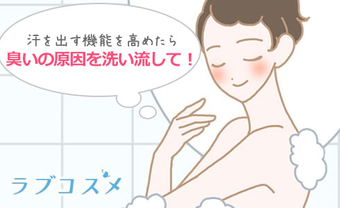 汗を出す機能を高める入浴トレーニングと一緒に、脇の臭いの原因を作る汚れや角質をしっかり取り除く洗浄も大切です。