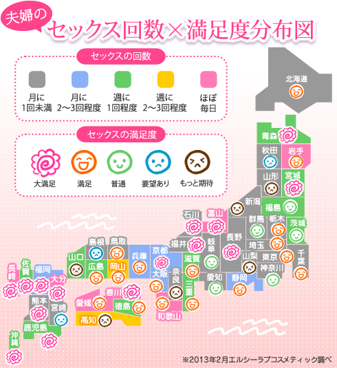 セックスの平均回数のデータをみていくと、47都道府県中、21都道府県が、なんとセックスの平均回数は月に1回未満…すなわちセックスレス状態という結果でした。