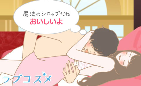 大好きな彼の唇の感触にシロップの甘さととろとろ感、エッチなグッズを使っているドキドキ感が合わさって、彼がびっくりするほどとろけてしまいました!!試すだけのはずが、シロップを塗る指とそれを舐めとる舌はだんだん下の方へ…。最終的にはシロップなのか私のなのか分からないくらい溢れてしまっていました(恥)