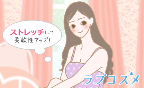 あまり関連性がないようにも思えますが、ストレッチで体を柔らかくしておくことも、気持ちいいセックスを追求するためのポイントです。普段から体を柔軟にして、特に太ももあたりの血流を良くしておくと、セックスで感じやすくなると言われています。また、体が柔らかいと色んな体位にも挑戦しやすくなり、楽しみの幅が広がりそうです。