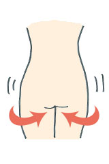 骨盤底筋を鍛えるためには、膣・尿道・膀胱を締める意識が重要です。通勤電車の中や、座って仕事をしているときにも、ぜひこの引き締めを意識してみてください。