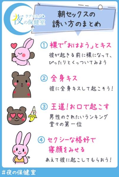 朝のセックスのメリットとデメリット、誘い方や注意点について解説しました。