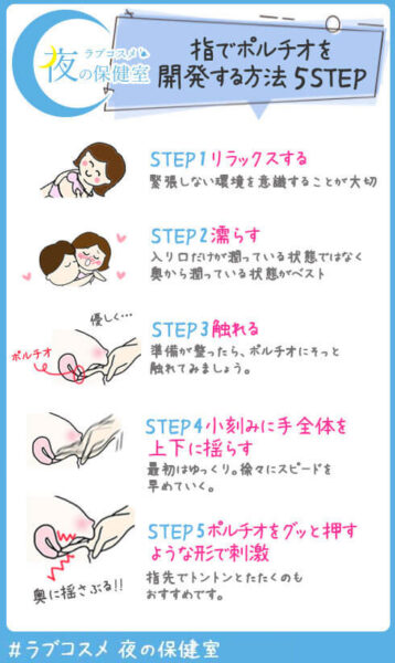 ポルチオを、指を使って開発するやり方とコツを紹介します。膣の長さは約8~10cmあり、指が短い人では届かないこともあるので、その場合は挿入する角度や位置などを工夫してみてください。