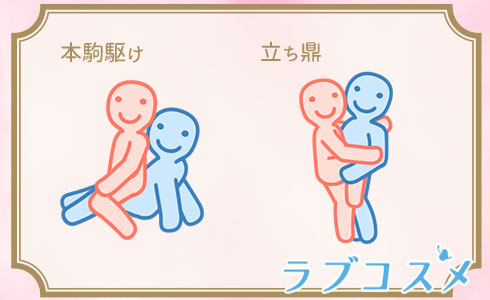 本駒駆けは下から突き上げてくる男性に対して、女性はしっかり踏ん張っておかないと体勢を崩しやすいです。長時間続けるとかなり筋肉痛になることも。立ち鼎は片足を支えるために、脚全体の筋肉を使います。バランス感覚が必要ですが、倒れないように彼に寄りかかることで、より密着度の増すセックスができます。