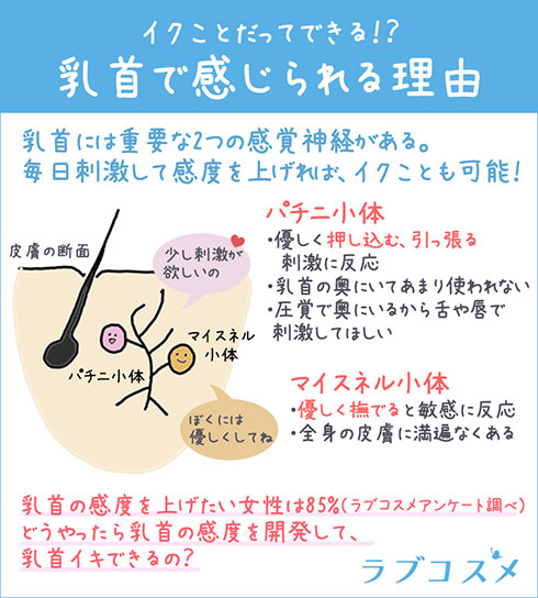乳首には2つの感覚神経があり、ここを活性化することで乳首の感度が開発されるといわれています。