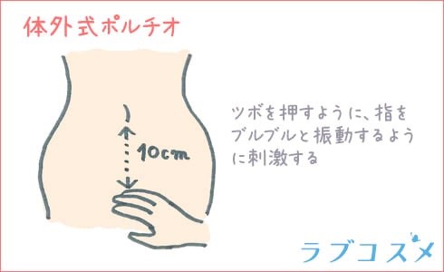 体外式ポルチオは、体の外からそのポルチオ部分をマッサージすることで性感帯を開発します。開発ができた場合、下腹部のマッサージだけでオーガズムが体験できるようになります。