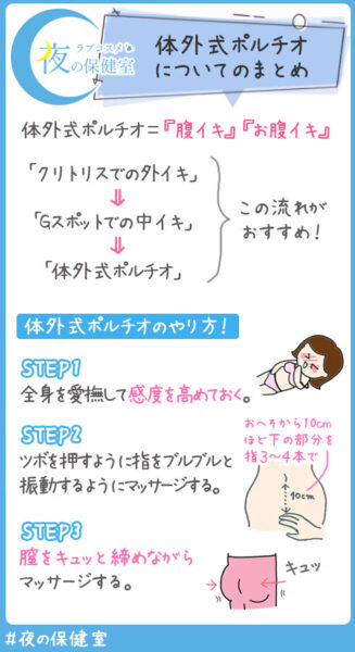 体外式ポルチオの手順とマッサージで腹イキするコツを紹介します。