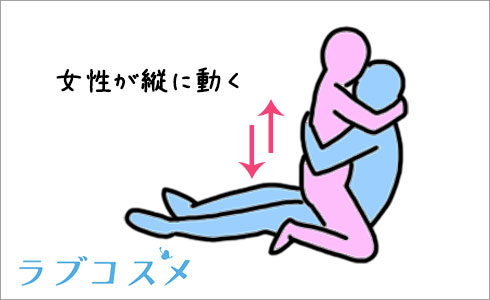 座位の基本的な動き方は「上下の動き」になります。女性が膝で体を支えるようにして、上下に体を動かすと、自然とピストンの動きになります。