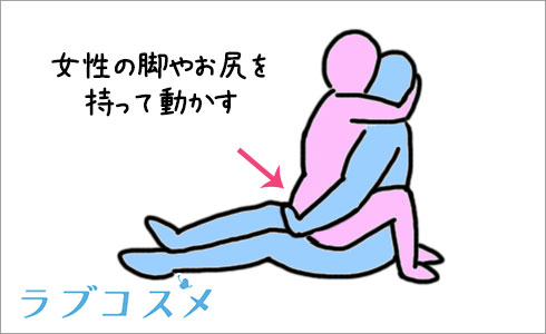 対面座位は騎乗位とは異なり、男性のサポートもなくてはならない重要な体位です。男性は女性の脚やお尻を掴んで、女性の腰を細かく上下に動かします。