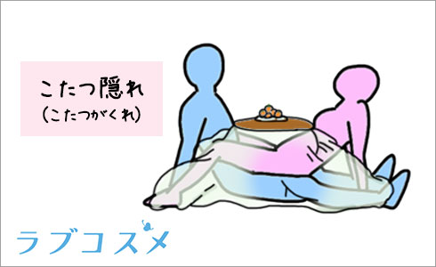 こたつ隠れはその名前の通り、こたつに隠れてセックスをするスリリングな体位です。上着はそのままに下半身はこたつの中に脱ぎ捨てているので、外見はこたつを挟んで見つめ合う男女にしか見えません。