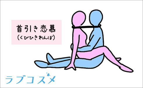 『首引き恋慕(くびひきれんぼ)』はお互いの首をヒモでくくって対面座位を行う体位です。 男女の首につながったヒモは二人の体を離すことを許してくれません。男性が体を倒せば、女性も首を引かれるように男性へ引き寄せられる仕組みとなっており、その逆も然り。軽く拘束される状態で、ソフトSMとして楽しめるかなり特徴的な体位です。