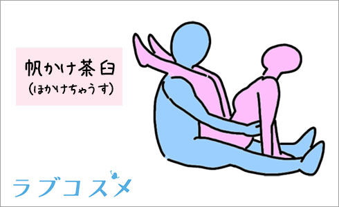 帆掛け茶臼は男性の上に女性がまたがる騎乗位のようでもあり、対面して男性主導でピストンを行い、女性は体をななめ後ろに倒した正常位のようでもあり、見た目は対面座位のようでもあるファジーな体位です。