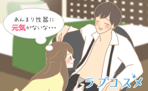パートナーの性器に元気がない以外の理由としては、挿入場所がわからないという問題もありえます。男性側の経験不足や部屋が暗すぎるという場合は、入れる場所に戸惑っている場合がありますので女性側が大きく足を広げるなど工夫してみてください。