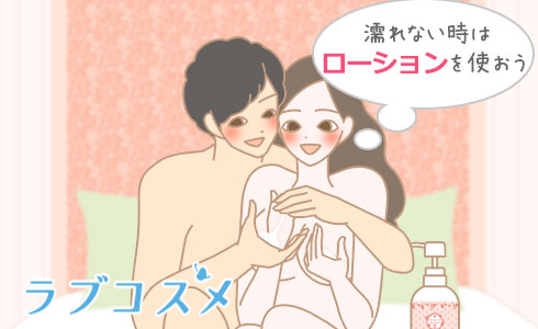 どれだけ丁寧に愛撫をされても、体質的になかなか濡れない女性もいます。そのような場合は、精神論で解決するよりも、ラブローションなどのラブアイテムに頼るほうが効率的です。ローションのヌルヌル感が潤滑剤の役割を担ってくれるため、痛みや出血などのリスクを抑えてペニスの挿入を促すことができますよ。
