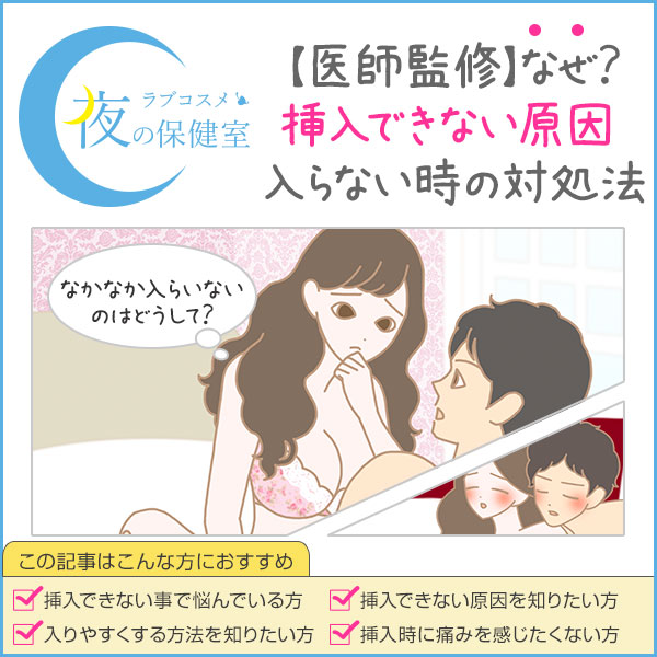 お互いの愛を確かめ合うために大切な行為であるセックスですが、経験が少なかったり、パートナーのサイズの関係で、いざ挿入となると入らず悩んでいるという人は多いようです。セックスで挿入できないのは非常にデリーケートな問題なので、誰にも相談できず悩み続けてしまっているカップルも多いのではないでしょうか?